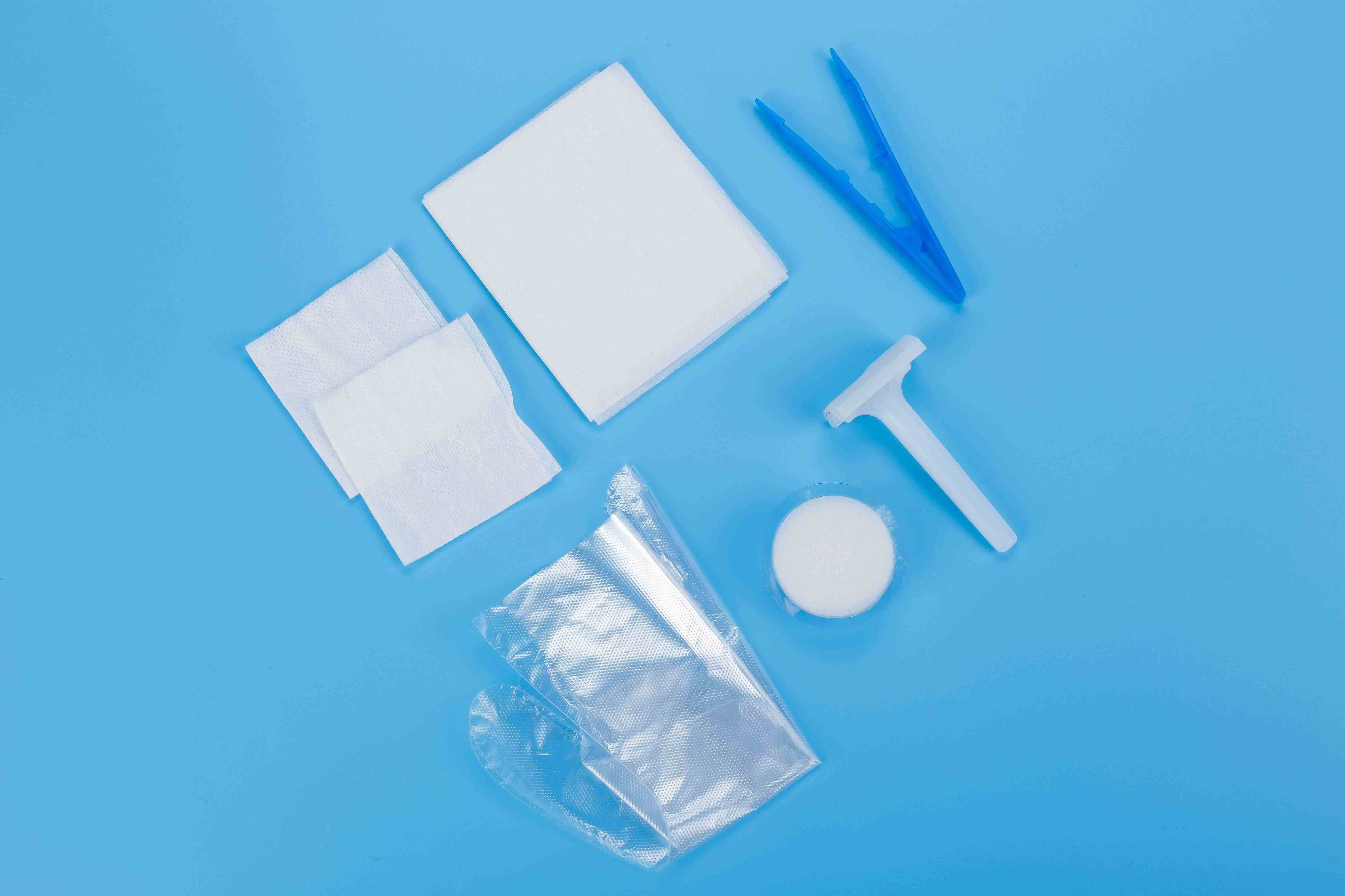 備品包的基本配置:備皮刀、軟皂液或滑石粉;選配;一次性使用醫用橡膠檢查手套、一次性使用薄膜手套、治療巾、消毒刷、棉球、一次性使用塑料鑷子、紙巾、輔料片、托盤。